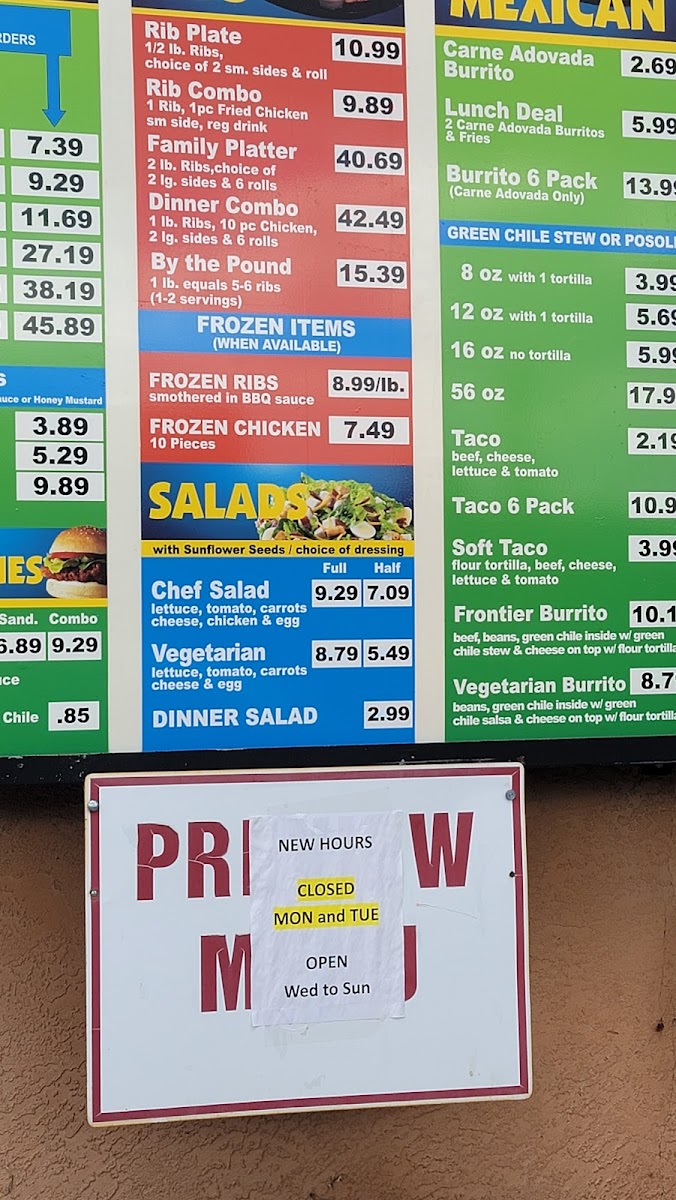 Favorites like fried chicken and carne adovada burritos provide filling options that are often enjoyed during lunch or dinner, while breakfast burritos can start the day with something simple yet flavorful. Sides such as spicy beans, mashed potatoes, and macaroni and cheese complement the main dishes, adding a homestyle touch to each meal.